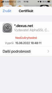 - Blíží se obnova SSL certifikátu *.dexus.netDexus využívá pro zabezpečení svých služeb tzv. hvězdičkový SSL certifikát vystavený jednotně pro všechny poddomény v rámci domény dexus.net. Certifikát je vystaven standardní certifikační autoritou a je použit mj. naPřečtěte si více o Blíží se obnova SSL certifikátu *.dexus.net[…]